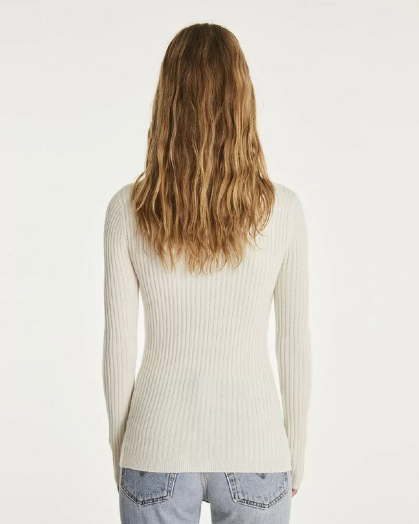 Pull Cachemire Col Rond Manches Cotelees 100% CachemirePull En Cachemire Cree A Paris Et Tricote En Mongolie.